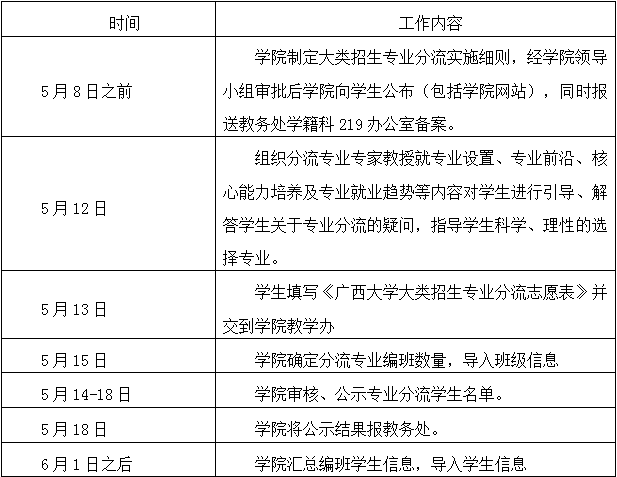 的大类招生专业分流实施细则。