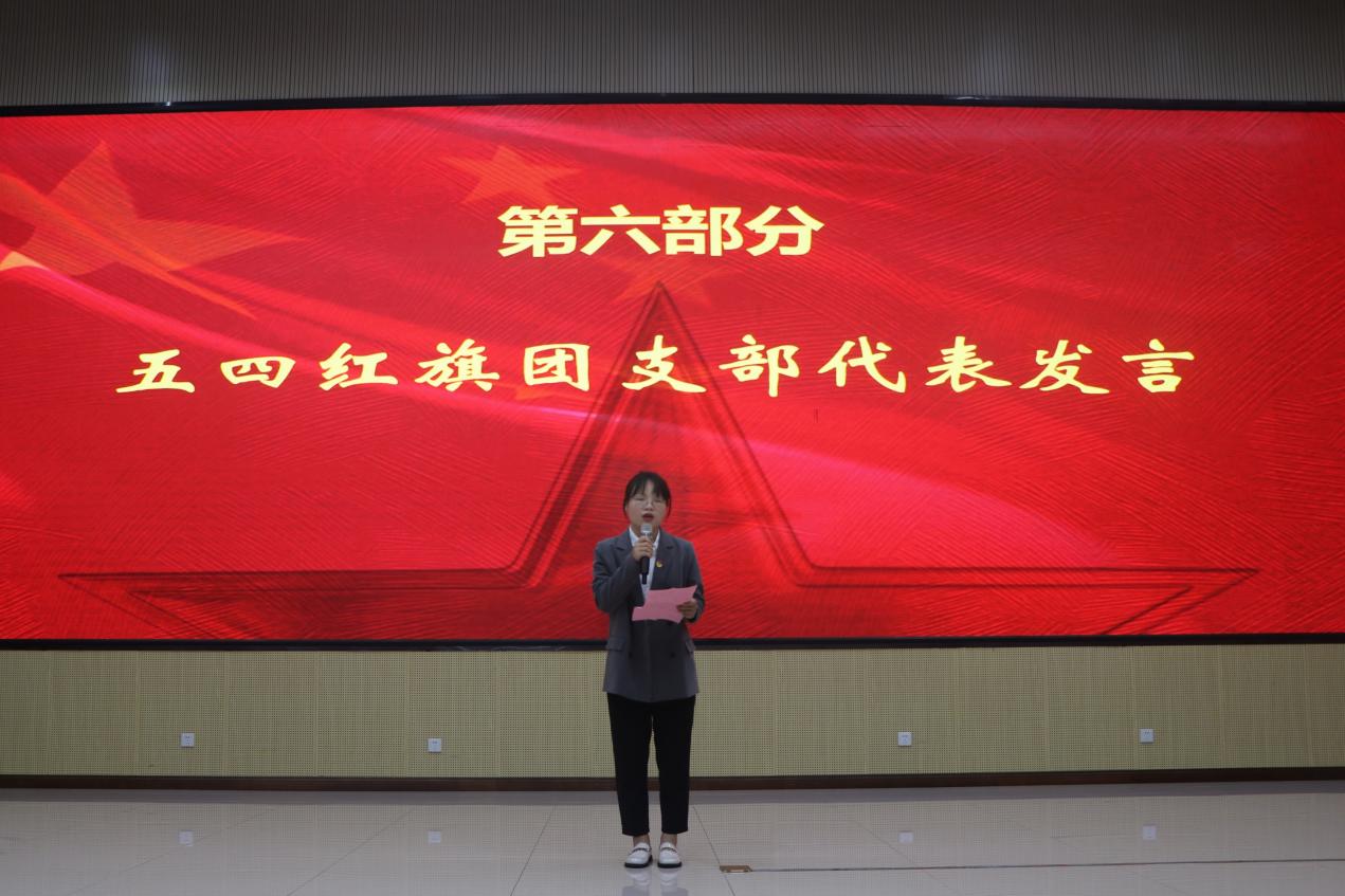 大会在嘹亮的国歌中拉开帷幕。首先,四位优秀团员进行了精彩演讲,她们用铿锵有力的语言和真挚饱满的情感,诉说着百年来一代又一代有志青年在党的领导下砥砺前行、接续奋斗的壮丽史诗。