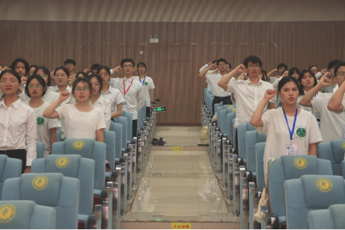 学生会新任主席团成员罗蝶带领全体学生骨干进行就职宣誓。“勤奋学习,积极工作……为学院更好发展贡献力量!”铮铮誓言,铿锵有力,诠释着新任学生骨干们为师生服务的不变初心,表达他们凝心聚力助力学院学生工作开创新局面的决心和勇气。
