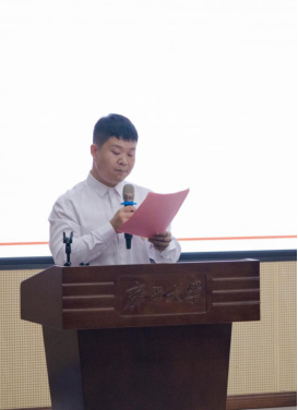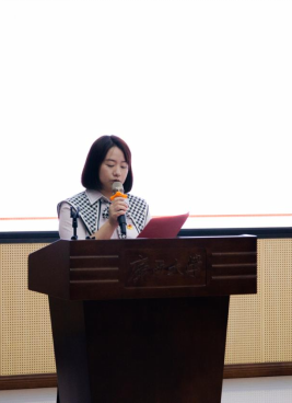 第五届研究生会主席团成员,谢泽昕向全体与会代表宣读了新一届研究生会倡议书。