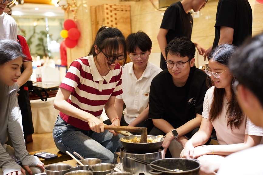 实践团成员体验油茶制作工艺