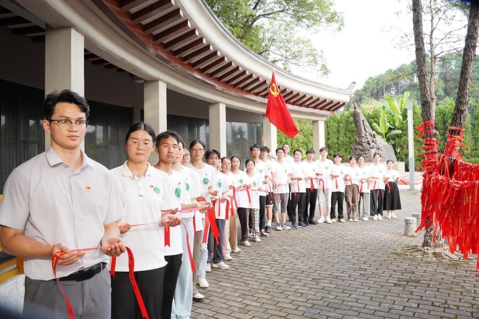 实践团师生在红飘带书写寄语礼敬革命先烈