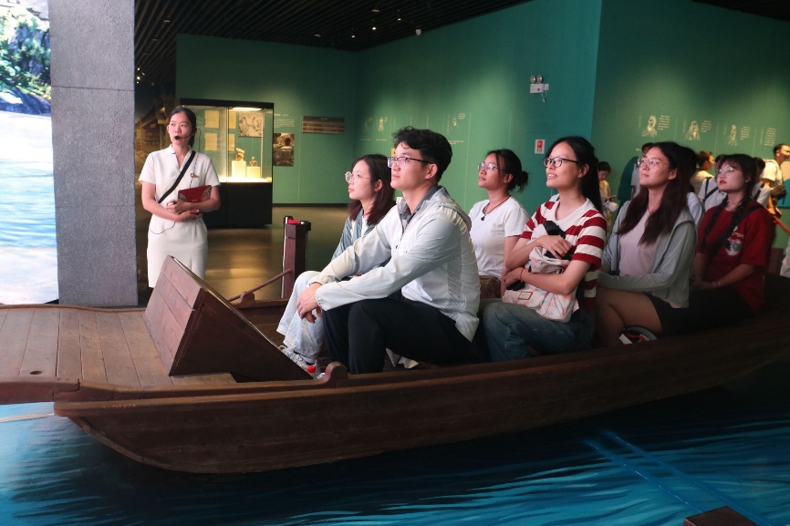 12日下午,实践团师生参观了兴安县灵渠博物馆。跟随工作人员的专业讲解,大家全面、立体、真实地感受到灵渠的宏伟及其灿烂文化,了解灵渠在促进中原与岭南政治、经济、文化交融以及海上丝绸之路的重要地位和独特贡献。团队成员纷纷表示要主动从灵渠文化中汲取教育智慧,凝聚奋进力量,将灵渠古韵内化于心、外化于行,始终保持艰苦奋斗、廉洁奉公的作风。