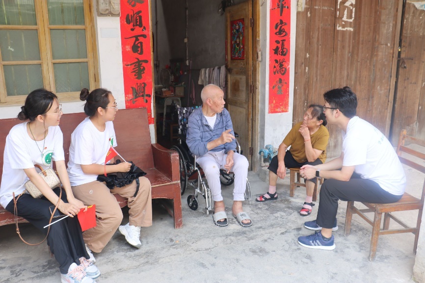 实践团成员向当地老人了解红军渡江故事