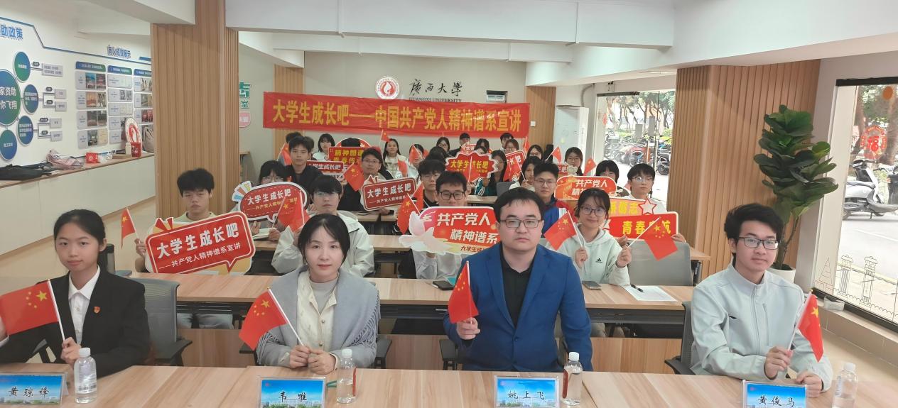专职辅导员姚上飞老师与2023级本科生黄俊马、2024级本科生黄琼锋为学校50余名师生作主题宣讲。