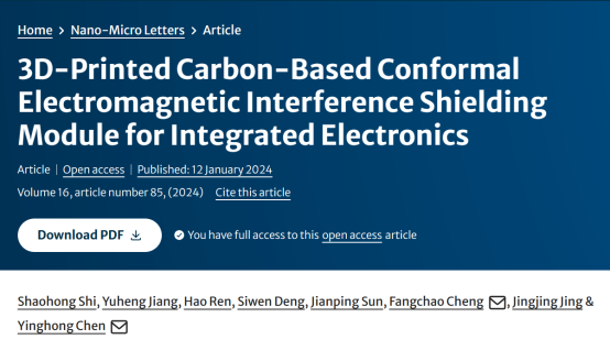 程芳超老师团队在碳基电磁屏蔽模组的3D打印先进制造领域取得重要进展,研究成果以“3D-Printed Carbon-Based Conformal Electromagnetic Interference Shielding Module for Integrated Electronics”为题,发表在SCI收录期刊《Nano-Micro Letters》(中科院1区,IF =26.6)上。论文通讯作者为成人电影