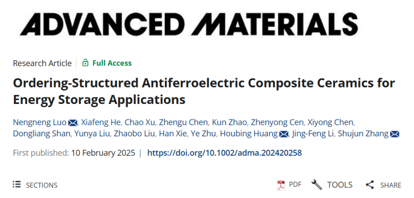 罗能能教授团队在氧化铝增强复合电介质储能陶瓷研究领域取得重要进展,相关研究成果以“Ordering-Structured Antiferroelectric Composite Ceramics for Energy Storage Applications”为题,发表在材料领域顶级期刊Advanced Materials上。成人电影