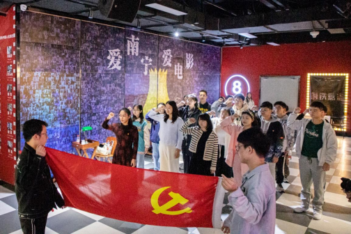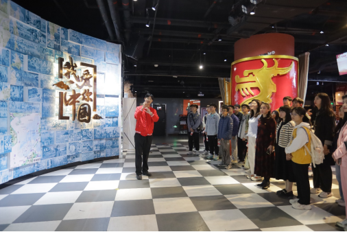 在讲解员的引导和介绍下,师生党员们先后参观了电影党校“我爱你,中国”“红船启航”“看电影,学党史”“渔阳里”等特色体验场景,沉浸式了解中国共产党的百年光辉奋斗历史和中国电影发展历程。