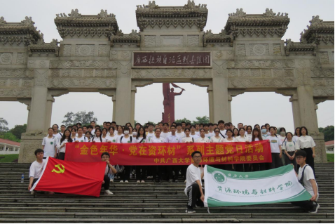 党委组织在广西烈士陵园开展“金色年华·党在资环材”系列主题党日活动之“缅怀革命先烈,传承红色基因”清明祭扫活动。学院学工组辅导员李青、周大淇,矿资本科生党支部党员,本研先行连、党建会入党积极分子代表参加活动。