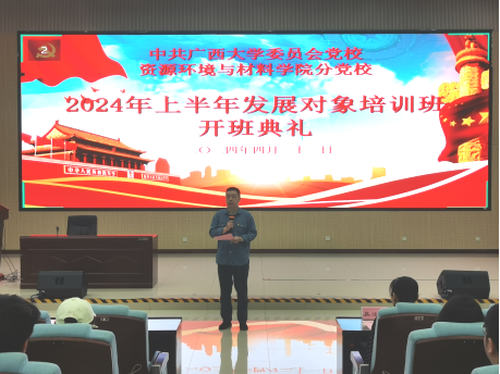 在学院123报告厅举行2024年上半年发展对象培训班开班典礼。学院党委副书记、纪委书记吴达慧,培训班班主任范剑辉,发展对象培训班全体学员参加开班活动。