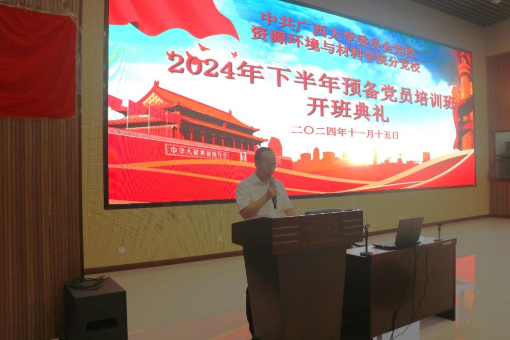 沈大强书记代表学院党委对通过组织考察、成为预备党员的同志表示祝贺。他强调,参加预备党员培训班是接受党性教育的重要途径之一,标志政治生活走上一个新的高度。他指出,本次培训班的目的在于深入学习贯彻习近平新时代中国特色社会主义思想和党的二十届三中全会精神,增强“四个意识”、坚定“四个自信”、做到“两个维护”,不断提升党性修养和政治素养,提高政治领悟力、判断力和执行力,永葆先进性。他对本次培训提出几点要求与期许:端正态度,抓住机会培训机会,在党章党史学习中有所收获、有所感悟;加强纪律意识,养成主动守纪习惯,既严守党的制度,也遵守培训课的章程;理论联系实际,学用结合,把党的知识用到指导工作学习中。最后,他预祝各位预备党员顺利结业,成为一名合格的共产党员。