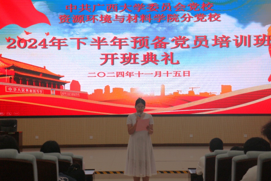 2024年下半年预备党员培训班在院123报告厅顺利开班。学院党委书记沈大强、培训班班主任田春老师和全体学生预备党员参加开班典礼。