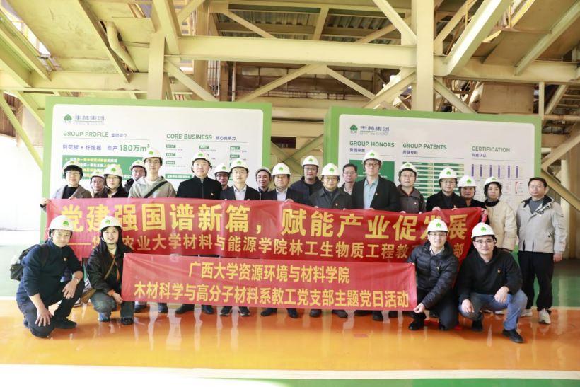 木材科学与高分子材料系教工党支部开展“党建引领聚合力,赋能产业促发展”主题党日活动。此次党日活动与华南农业大学材料与能源学院林工生物质工程教工党支部赴广西丰林木业集团股份有限公司联合开展,并进行深入交流讨论,激发党员在专业领域发挥先锋模范作用,以党建促业务,增强党员为党育人、为国育才以及服务产业发展的使命感。