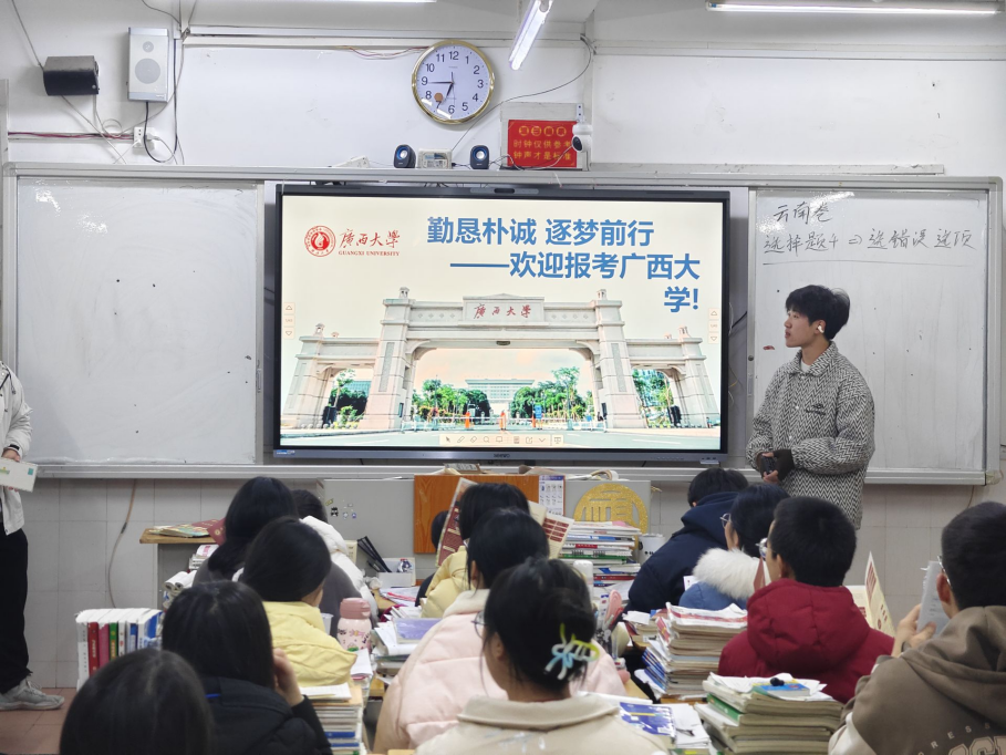 “我为西大打call!”——1月21日,矿物资源工程241班兰世民同学及其组员在广西资源县资源中学进行招生宣传。他们通过视频、图片和文字等形式介绍成人电影