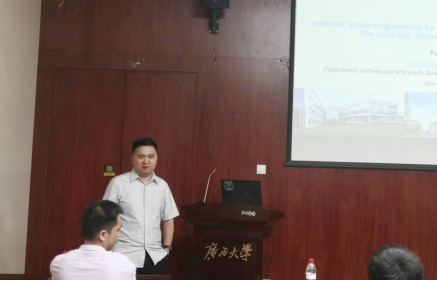 进行学术交流,并作了题为《铁电材料中通过位错压印的本征应变工程——概念、各向异性及其应用》的学术报告。报告会由罗能能副院长主持,学院相关专业的师生参与此次活动。