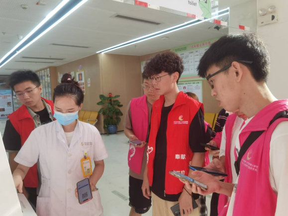 早上8时许和下午14:30时许,根据志愿服务分组和时间安排,各支部志愿者们按时抵达南宁市妇幼保健院。医院的工作人员对他们进行了简单的工作培训,随后志愿者们被分配至各科室,如病案室、人事科、放射科、口腔科、耳鼻喉科等工作岗位上,为医生护士和患者提供帮助。