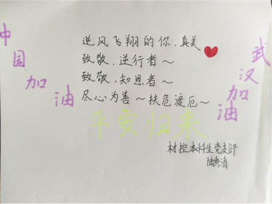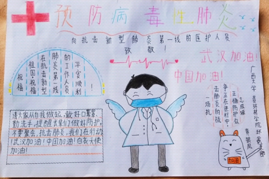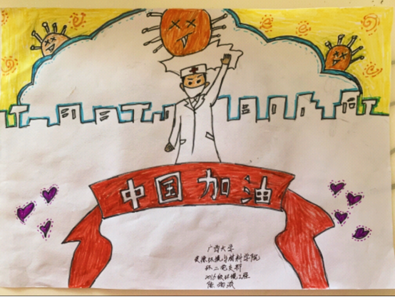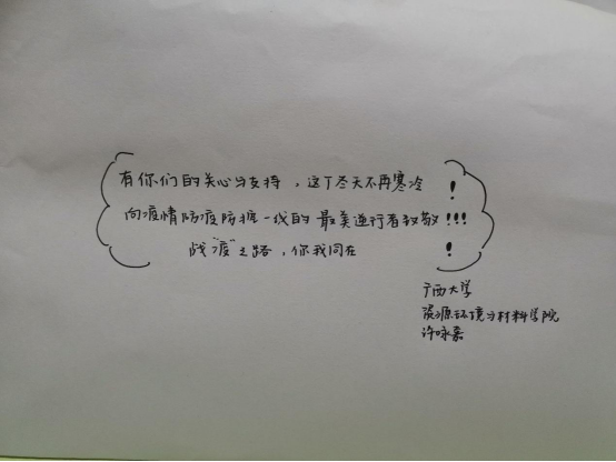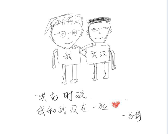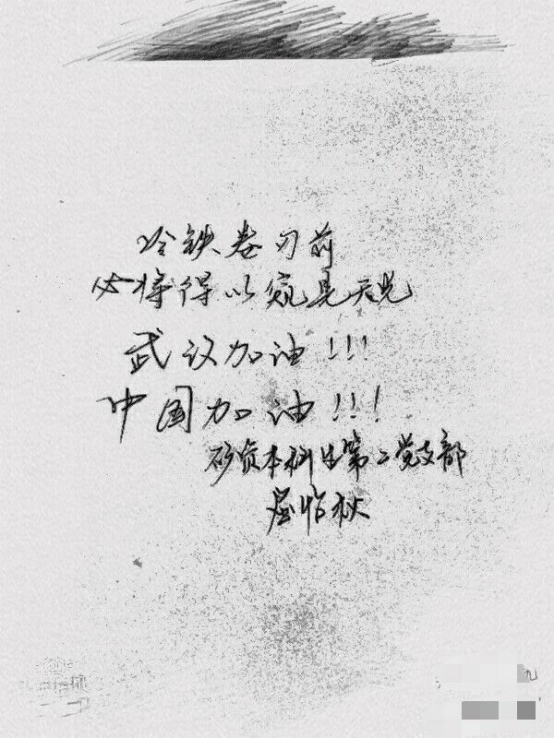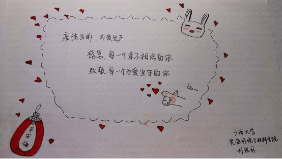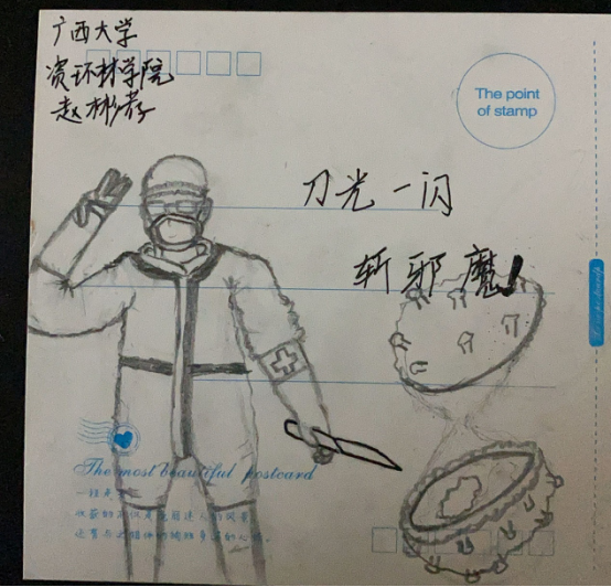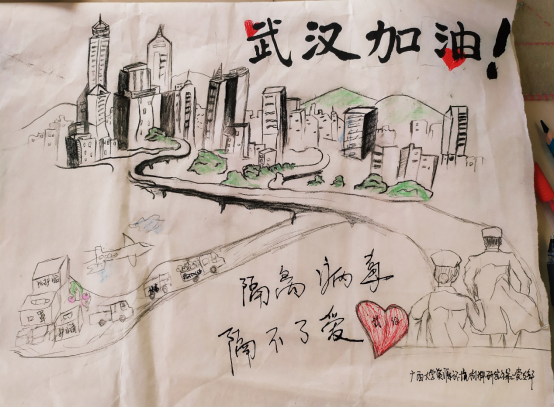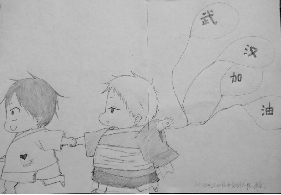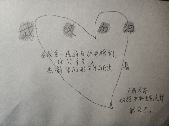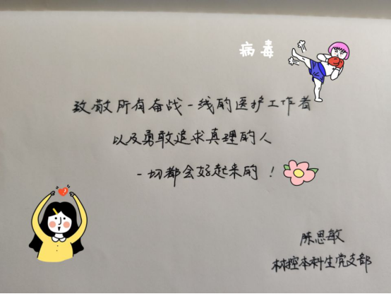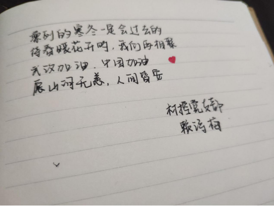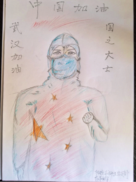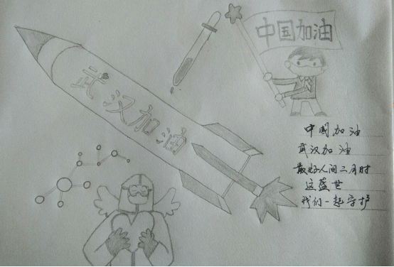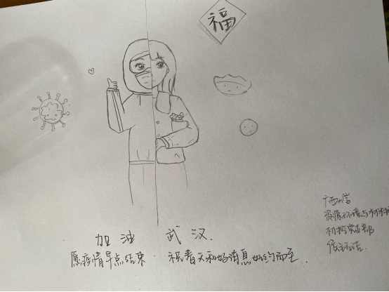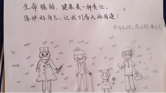 用手中的笔和纸表达对战“疫”工作者的感恩和祝福