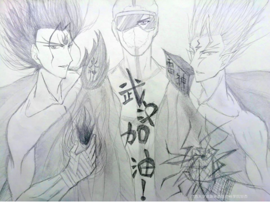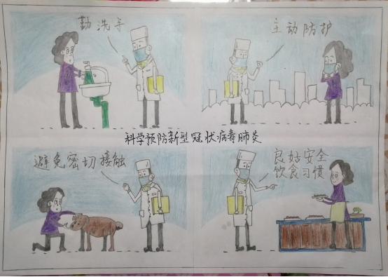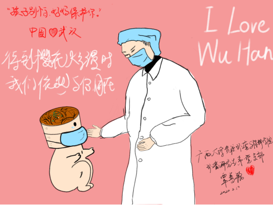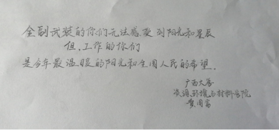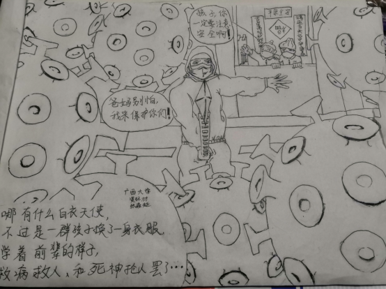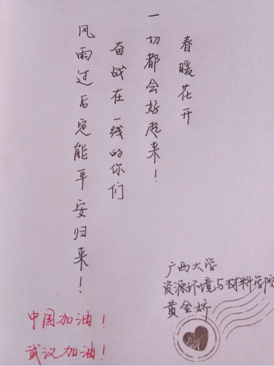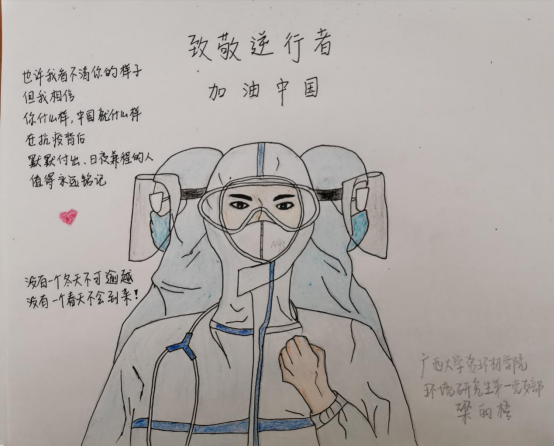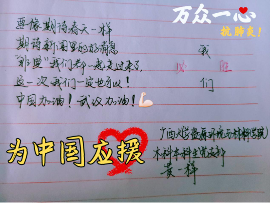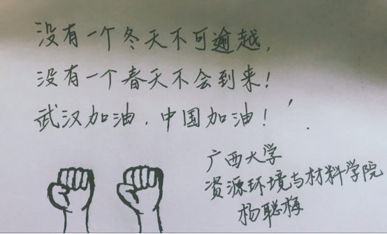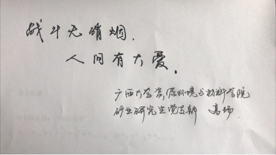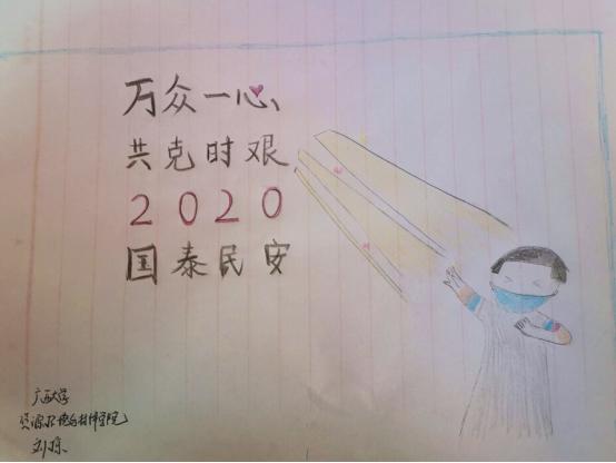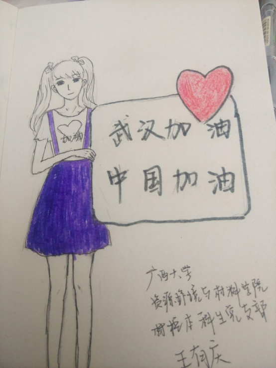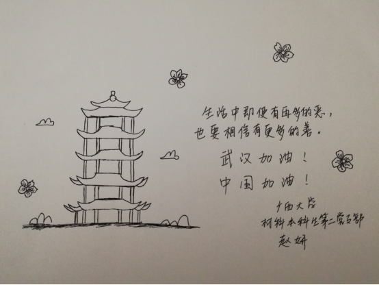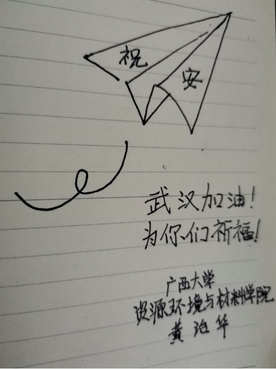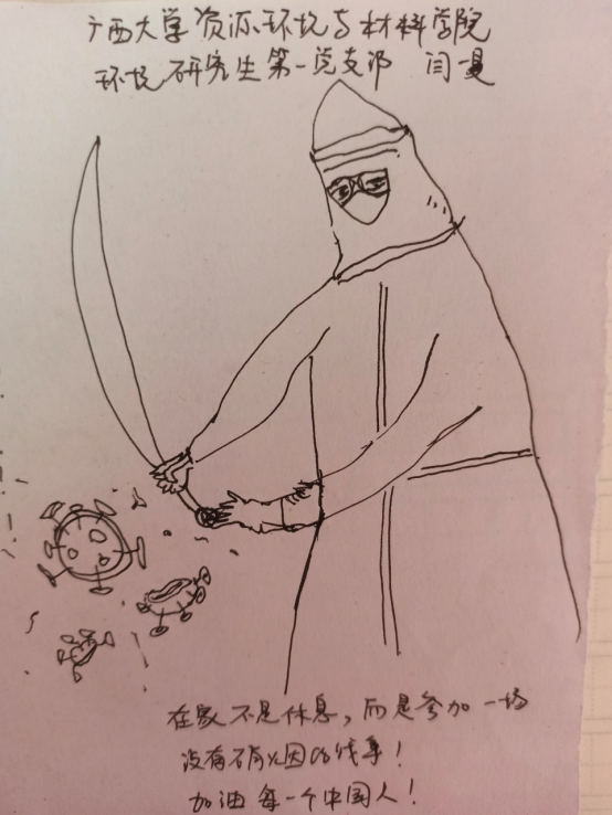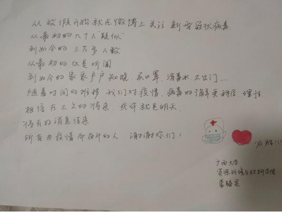 用手中的笔和纸表达对战“疫”工作者的感恩和祝福