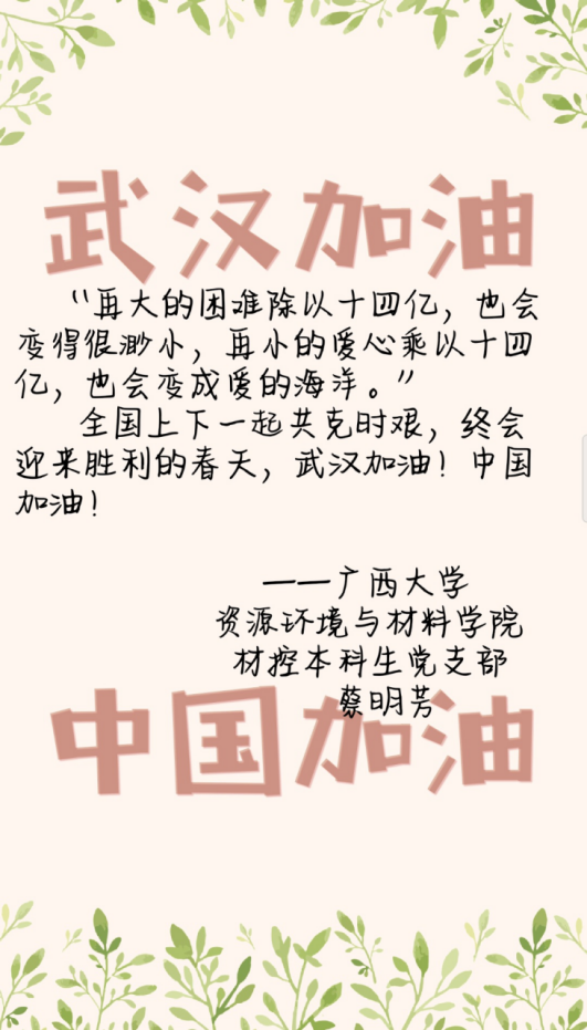 这是一个不一样的新年,武汉爆发新型冠状病毒肺炎,全国人民心系一起,各省都派出医疗队救援武汉,我和爸爸妈妈也各自捐款了200元支援武汉,希望能早日战胜疫情,社会重新恢复正常。