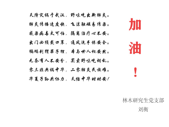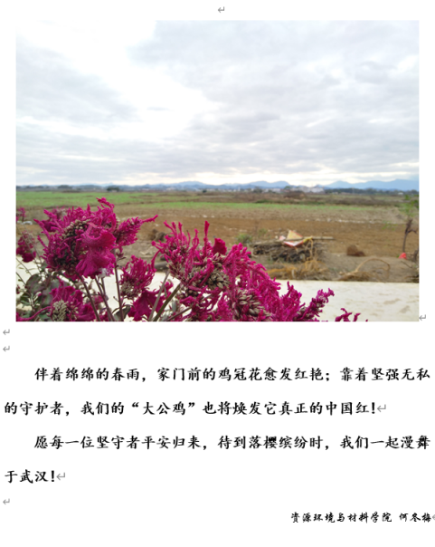 作为当代大学生,在战疫初期,我们主动向村委建议封村封路,也取得了一定的效果。这是自己仅有的一点贡献!