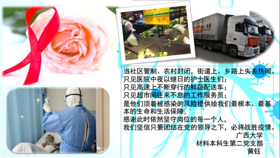 作为一名年轻党员,或许我们并不能为抗击新型冠状病毒作出直接贡献,但我们同样责任巨大,不可忽视。首先要基本做到的便是服从党和国家的安排,不出门,多通风,戴口罩,勤洗手,强健体魄,不做病毒的传播源。由于疫情发展迅速,在村委会的呼吁下,我主动报名参加全村疫情的统计工作,即使任务繁重,但我深知困难面前,党员应当冲在前,最终我顺利完成了任务,为村里的疫情防控作出了应有的贡献。